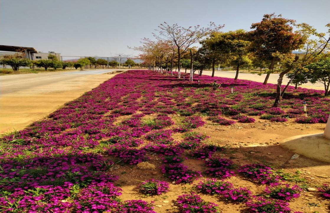 春末夏初,風和雨潤。踏入百花山,暖風帶著花香撲鼻而來。每天上班,迎接我們的是主道兩旁繽紛怒放的歐石竹紫紅色地面花海。踏著明快的腳步,感覺很美。