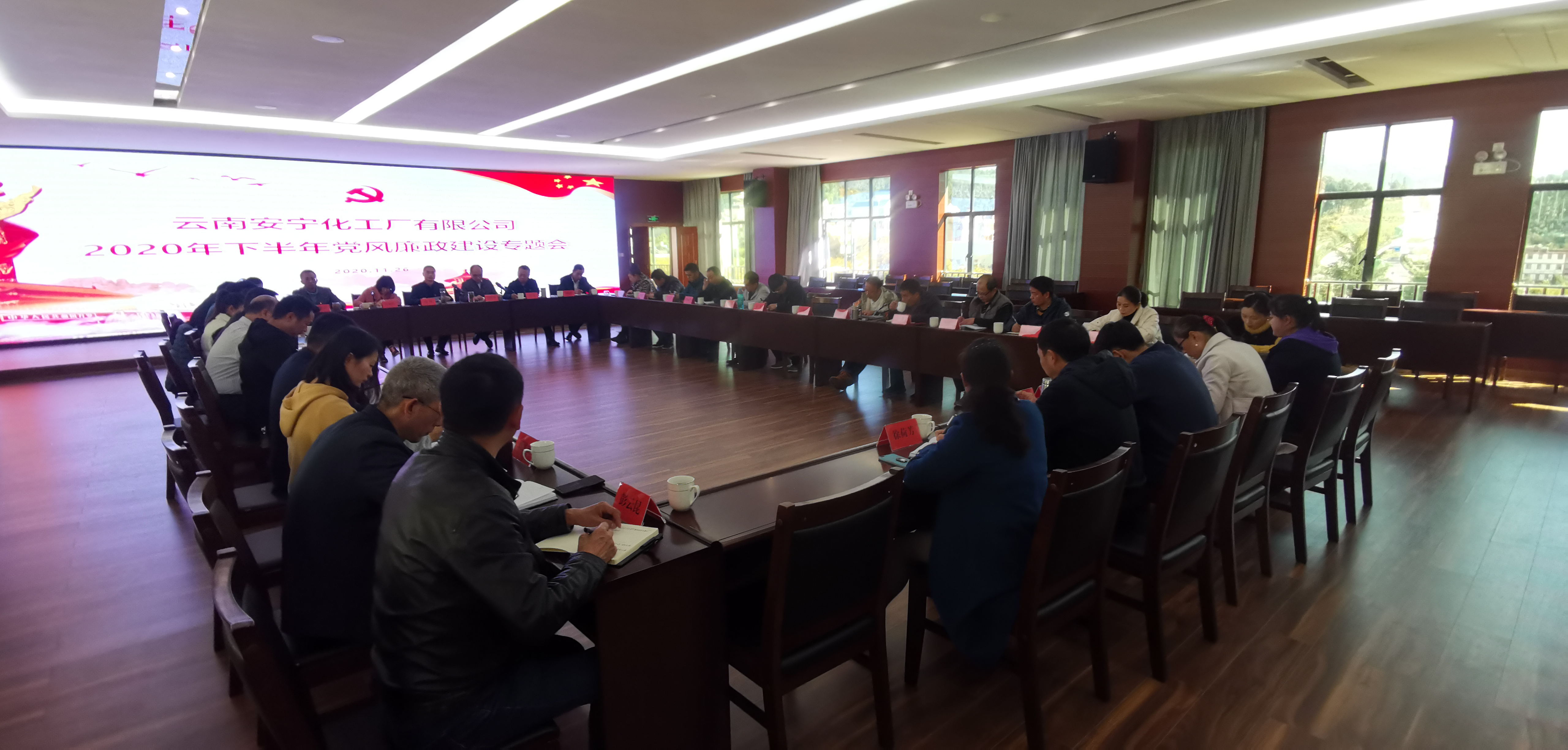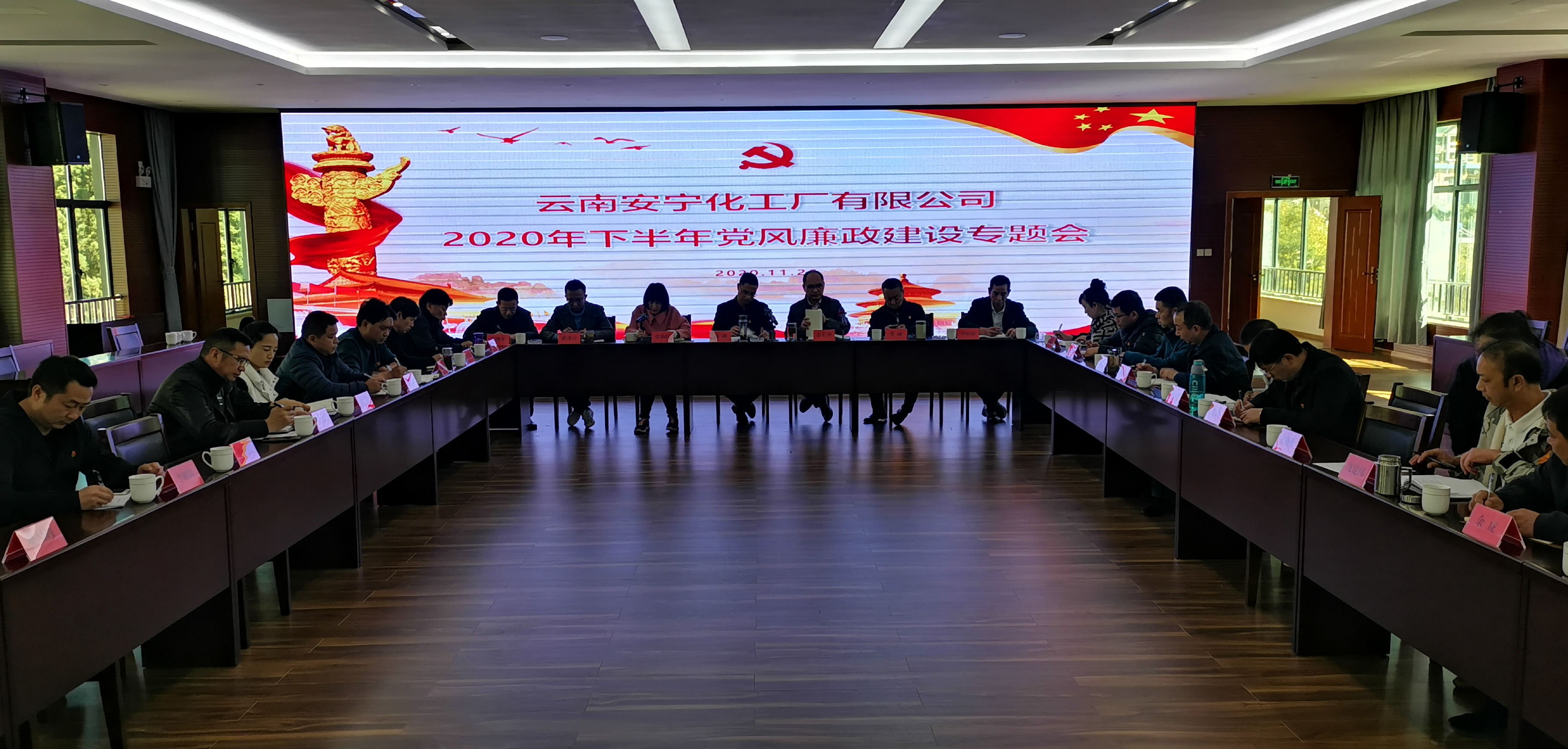2020年11月26日,公司召開2020年下半年黨風(fēng)廉政建設(shè)專題會(huì),黨委委員及班子成員、董事會(huì)及監(jiān)事會(huì)成員、紀(jì)委委員、各分公司黨總支書記及經(jīng)理、總部黨支部書記、各職能部門負(fù)責(zé)人、控股公司負(fù)責(zé)人共計(jì)38人參加會(huì)議。黨委副書記、紀(jì)委書記、監(jiān)事會(huì)主席、工會(huì)主席張艷紅主持會(huì)議。