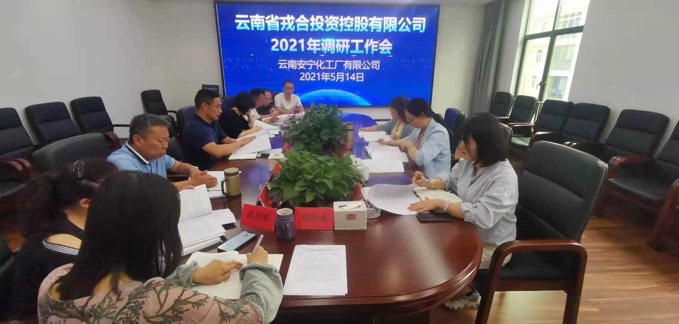 2021年5月14日,云南省戎合投資控股有限公司紀委書記周婇帶領調研組一行三人,到公司進行調研,公司黨委書記、董事長高劍、領導班子及有關部門負責人參加調研。