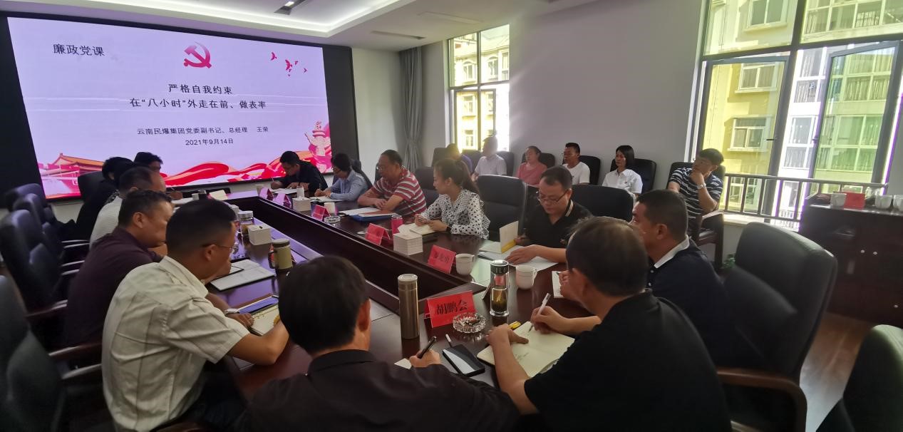 2021年9月14日上午,云南民爆集團有限責任公司黨委副書記、總經理王榮到公司講授廉政黨課。民爆集團督導組成員,公司黨委理論學習中心組成員,部分黨支部書記、中層管理人員共28人參加黨課學習。
