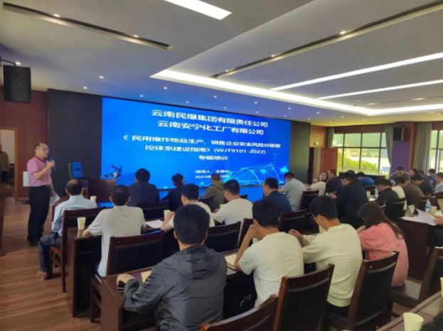 為組織開展好“安全宣傳咨詢日”活動,加強安全風險分級管控與隱患排查治理能力,提升各級人員安全意識,6月16日,公司邀請《民用爆炸物品生產、銷售企業安全風險分級管控體系建設指南》(WJ/T9101-2022)、《民用爆炸物品生產、銷售企業生產安全事故隱患排查治理體系建設指南》(WJ/T9100-2022)起草人王春樂和周小溪分別擔任授課老師,進行新標準專題培訓。本次培訓由公司黨委副書記、總經理彭長華主持,公司各級安全、技術、質量、營銷管理人員以及各生產點車間主任共計69人參加培訓。